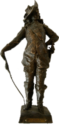 - ↑ 2º Regimiento de Húsares Nota del 31 de enero de 2009. Consultado el 31/3/2009. Texto: Ainsi, Il y a dans la salle à manger du Mess Officiers, un bronze patiné représentant un Mousquetaire, époque Louis XIII. Cette œuvre est signée Benneteau et possède une petite plaque « don du lieutenant Ismaël de Lesseps » : le fourreau de son épée est cassé et sa canne a subi les outrages du temps. - Félix Benneteau-Desgrois (1879-1966) a été prix de Rome en 1909 et plusieurs de ses œuvres sont dans des musées français. - Ferdinand Marie Ismaël de Lesseps était le fils de Ferdinand de Lesseps, le concepteur du canal de Suez : capitaine au 3e Chasseurs d’Afrique en 1915, il est mort pour la France, le 30 septembre 1915.. Traducción: Sobre la mesa Mess del comedor se encuentra un bronce patinado que representa un mosquetero, de la época de Luis XIII. Este trabajo está firmado Benneteau y cuenta con una pequeña placa "don Ismael Teniente de Lesseps la vaina de la espada se rompe, y su caña sufrió los estragos del tiempo. Benneteau-Desgrois Félix (1879-1966) fue Premio de Roma en 1909 y varias de sus obras se encuentran en los museos franceses. - Marie Ferdinand de Lesseps Ismael era el hijo de Ferdinand de Lesseps, el creador del Canal de Suez: capitán 3 Chasseurs d'Afrique en 1915, murió en Francia el 30 de septiembre de 1915.